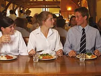 Проживание: King's Ely гордится системой пансионатов, созданной на территории школы. Каждый имеет свой «дом», даже приходящие студенты. Учащиеся бординговой школы проживают в отдельных зданиях, имеющих тысячелетнюю историю. Пансионаты полностью переоборудованы для нужд современных школьников. Девочки и мальчики из King's Junior занимают небольшое уютное общежитие, в котором проживает также классный руководитель и старший воспитатель со своей семьей. Старшие девушки располагаются в ярком Доме на холме, с просторной спальней, комнатами для отдыха и отдельным садиком во дворе. Юноши занимают самое старое в Британии здание Школьный Дом. В каждом общежитии старшей школы также проживает воспитатель. Питание: полный пансион в просторной, красивой, хорошо оборудованной столовой. Обеды осуществляются по гибкому графику (с 13 до 15 часов), чтобы обеспечить школьникам возможность посещать занятия по интересам. Предлагается широкий выбор блюд, на столе всегда в изобилии свежие фрукты. Предусмотрены вегетарианская, иудейская, мусульманская, гипоаллергенная диеты. Индивидуальное внимание: каждый ученик имеет классного руководителя, отвечающего за академические успехи и комфортное проживание ребенка. У младших школьников также имеются наставники из числа старших студентов и преподавателей. Вновь прибывающим школьникам 3 года обучения назначается «друг» (buddy) из студентов 8 года обучения, который часто помогает своему младшему приятелю и в последующие годы. Родители трижды в год (в середине каждого триместра) получают по электронной почте промежуточные отчёты с текущими оценками учащихся, один-два раза в год - подробный отчет школьной администрации и учителей об успехах детей. Дважды в год в школе организуются родительские собрания. Много полезной информации появляется на сайте учебного учреждения. При Медицинском центре работают психологи, готовые помочь школьникам преодолеть трудности общения.