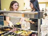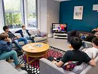 Общежития имеют комнаты отдыха, общие кухни и прачечные. В стоимость входит питание в школьной столовой.